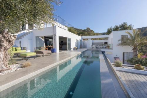يقع مكان إقامة "Villa Entre ciel et sel" في سيس ساليناس على بُعد 1.8 كم من شاطئ إيس كافاليت (Es Cavallet Beach) و2 كم من شاطئ لاس ساليناس، ويوفر واي فاي مجاني وجهاز تكييف ومسبحاً خارجياً. توفر هذه الفيلا مسبحاً خاصاً وحديقة ومواقف خاصة للسيارات مجاناً.