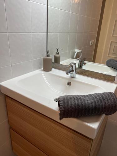 تتوفر (1) غرفة نوم في الشقة، وغرفة معيشة، ومطبخ مجهز بالكامل فيه ثلاجة وماكينة قهوة، و (1) حمّام مع دش، وجهاز تكييف. تتوفر مناشف وبياضات أسرّة في الشقة.