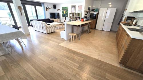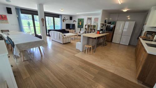 The spacious chalet with a terrace and mountain views features 4 bedrooms, a living room, a flat-screen TV, an equipped kitchen with a dishwasher and an oven, and 4 bathrooms with a walk-in shower. Towels and bed linen are provided in the chalet. For added privacy, the accommodation has a private entrance and soundproofing.