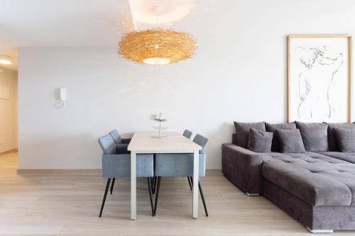تتوفر (2) غرفة نوم في الشقة، وغرفة معيشة، وتلفزيون بشاشة مسطحة، ومطبخ مجهز فيه ثلاجة وغسالة صحون، و (1) حمّام مع بيديت، بالإضافة إلى تراس وإطلالات على البحر. تتوفر مناشف وبياضات أسرّة في الشقة.