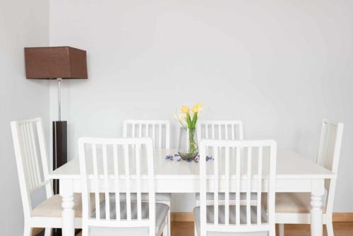 تتوفر (3) غرفة نوم في الشقة، بالإضافة إلى مطبخ فيه ثلاجة وفرن وماكينة قهوة. تتوفر مناشف وبياضات أسرّة في الشقة.