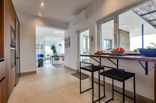 توفر هذه الفيلا إمكانية الوصول إلى شرفة مع إطلالات على الجبل، وتتوفر (4) غرفة نوم، وجهاز تكييف. توفر هذه الفيلا تراس مع إطلالات على البحر، بالإضافة إلى تلفزيون بشاشة مسطحة، ومطبخ مجهز بشكل جيد فيه ثلاجة وغسالة صحون وفرن، و (4) حمّام مع دش ومجفف للشعر.