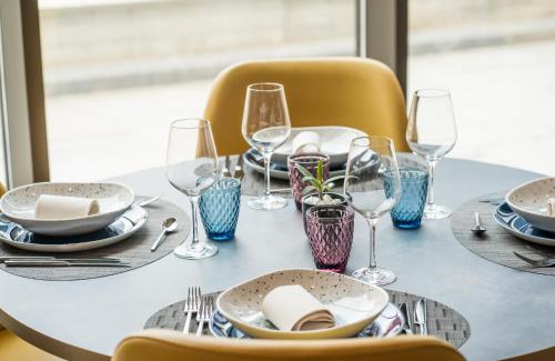 • يتم تعقيم جميع الأطباق وأدوات تناول الطعام والأكواب وأدوات المائدة الأخرى