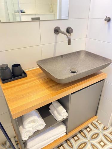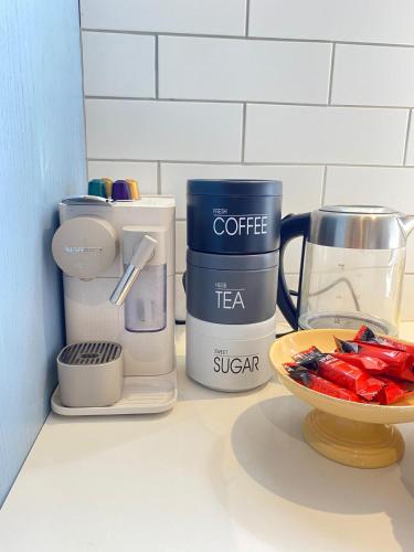 توفر هذه الشقة (1) غرفة نوم، بالإضافة إلى (1) حمّام مع حوض استحمام ساخن وحوض استحمام ولوازم استحمام مجاناً، وجهاز تكييف. المطبخ مجهز بثلاجة ومحمصة، بالإضافة إلى ماكينة قهوة وغلاية.