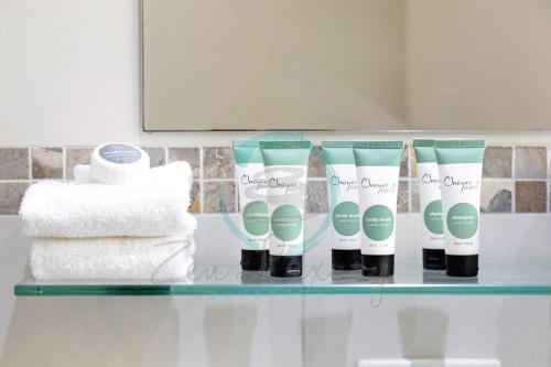 تتوفر (4) غرفة نوم في هذه الشقة، وتلفزيون بشاشة مسطحة، ومطبخ فيه ثلاجة وغسالة صحون، وجهاز تكييف. تتوفر مناشف وبياضات أسرّة في الشقة.