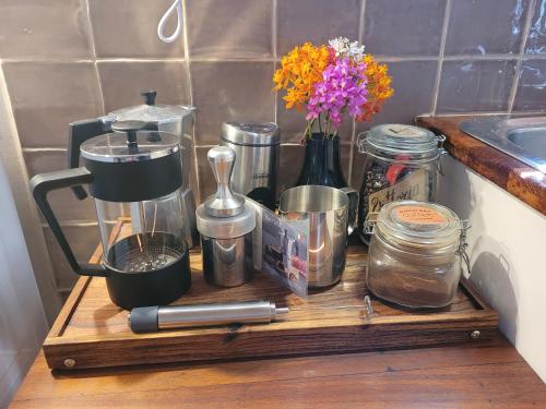 تتوفر (1) غرفة نوم في الكوخ، وغرفة معيشة، وتلفزيون بشاشة مسطحة، ومطبخ مجهز فيه ثلاجة وفرن، و (1) حمّام مع دش، بالإضافة إلى تراس وإطلالات على الحديقة. تتوفر مناشف وبياضات أسرّة في الكوخ.