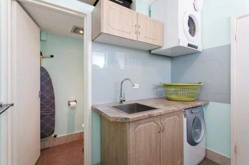 تتوفر (1) غرفة نوم في الشقة، ومطبخ فيه ثلاجة وغسالة صحون، و (1) حمّام مع دش ومجفف للشعر وغسالة ملابس. تتوفر مناشف وبياضات أسرّة في الشقة.