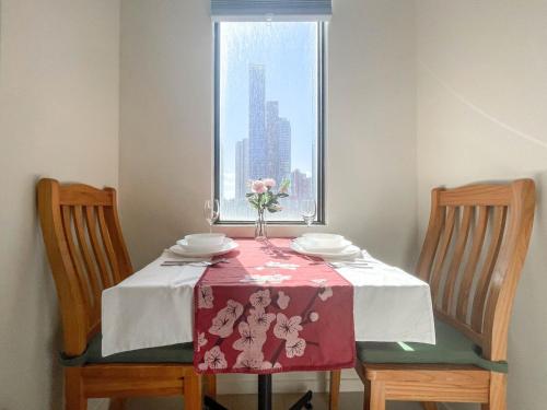 تتوفر (1) غرفة نوم في هذه الشقة، وتلفزيون بشاشة مسطحة، ومطبخ فيه ثلاجة وميكروويف، وجهاز تكييف.