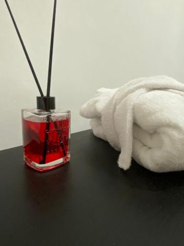 تتوفر (1) غرفة نوم في هذه الشقة، وغرفة معيشة، ومطبخ مجهز بالكامل فيه ثلاجة وماكينة قهوة، و (1) حمّام مع دش ولوازم استحمام مجاناً، وجهاز تكييف. تتوفر مناشف وبياضات أسرّة في الشقة.