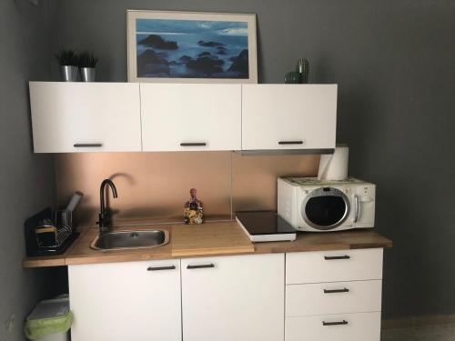 تتوفر (1) غرفة نوم في الشقة، وغرفة معيشة، ومطبخ مجهز بالكامل فيه ثلاجة، و (1) حمّام مع بيديت ولوازم استحمام مجاناً، وجهاز تكييف. يوجد تلفزيون بشاشة مسطحة.