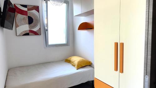 تتوفر (2) غرفة نوم منفصلة في الشقة، و (1) حمّام، وغرفة معيشة، ومطبخ مجهز بالكامل فيه ثلاجة وغسالة صحون، وجهاز تكييف. تتوفر مناشف وبياضات أسرّة في الشقة.