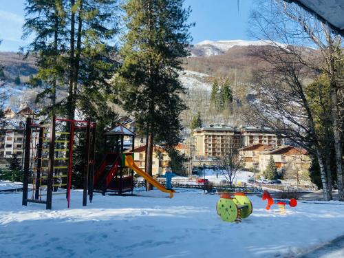 تتوفر (1) غرفة نوم في الشقة، وغرفة معيشة، وتلفزيون بشاشة مسطحة، ومطبخ مجهز فيه ثلاجة وفرن، و (1) حمّام مع بيديت، بالإضافة إلى شرفة وإطلالات على الجبل. تتوفر مناشف وبياضات أسرّة في الشقة.