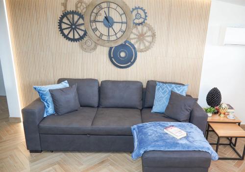 تتوفر (1) غرفة نوم في الشقة، وغرفة معيشة، ومطبخ مجهز بالكامل فيه ثلاجة وماكينة قهوة، و (1) حمّام مع بيديت ودش، وجهاز تكييف. يتوفر تلفزيون بشاشة مسطحة مع قنوات فضائية.