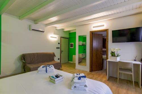 لدى كل غرفة في "Appartamento immerso nella natura con parcheggio - Viola" جهاز تكييف ومكتب وتلفزيون بشاشة مسطحة، بالإضافة إلى حمّام خاص وبياضات أسرّة ومناشف، وتراس مع إطلالة على الجبل. يتوفر للضيوف في غرف الضيوف خزانة ملابس وماكينة قهوة.