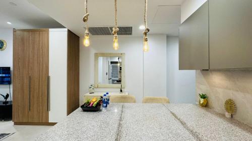 يقدم مكان إقامة "Penta Square Retreat Premier Apartments in DHA Phase 5 Lahore by LMY" للضيوف تراس وإطلالات على المدينة ومنطقة جلوس وتلفزيون بشاشة مسطحة، بالإضافة إلى مطبخ مجهز بالكامل مع ثلاجة وغسالة صحون، وحمّام خاص مع دش ولوازم استحمام مجاناً. يتوفر أيضاً ما يلي: فرن وميكروويف وميني بار، بالإضافة إلى غلاية.
