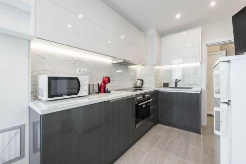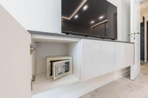تتوفر (1) غرفة نوم في هذه الشقة، وتلفزيون بشاشة مسطحة مع قنوات الكابل، ومطبخ فيه غسالة صحون وفرن، وجهاز تكييف. تتوفر مناشف وبياضات أسرّة في الشقة.