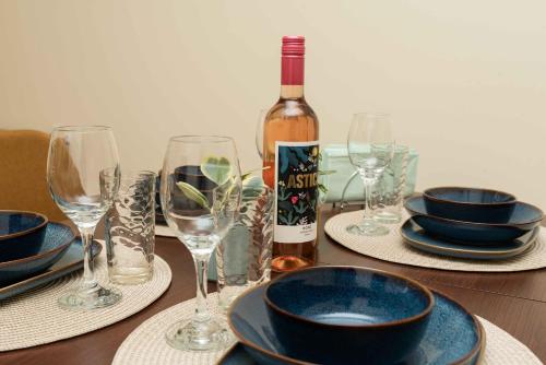 تتوفر (2) غرفة نوم في هذه الشقة، وتلفزيون بشاشة مسطحة، ومنطقة لتناول الطعام، ومطبخ فيه ثلاجة، وغرفة معيشة، وجهاز تكييف.