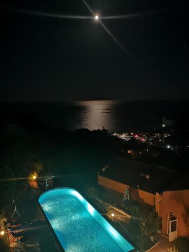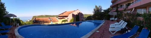 يقع مكان إقامة "Seaview apartment complex Karia" في كافارنا، ويوفر مسبحاً خارجياً موسمياً وحديقة ومنطقة شاطئ خاص، بالإضافة إلى إطلالة على البحر وواي فاي مجاني. في منطقة هذه الشقة، يمكن للضيوف المشاركة في أنشطة مثل: رياضة المشي لمسافات طويلة وصيد الأسماك، وتتوفر مواقف خاصة للسيارات مجاناً.