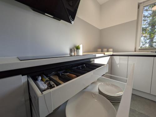 تتوفر (2) غرفة نوم في بيت العطلات هذا، وغرفة معيشة، ومطبخ مجهز بالكامل فيه ثلاجة وماكينة قهوة، و (2) حمّام مع دش ولوازم استحمام مجاناً، وجهاز تكييف. تتوفر مناشف وبياضات أسرّة في بيت العطلات.
