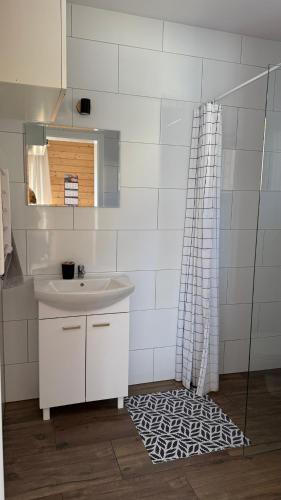 تتوفر (2) غرفة نوم في بيت العطلات، وتراس، وغرفة معيشة، ومطبخ صغير مجهز بشكل جيد. يوجد تلفزيون بشاشة مسطحة.