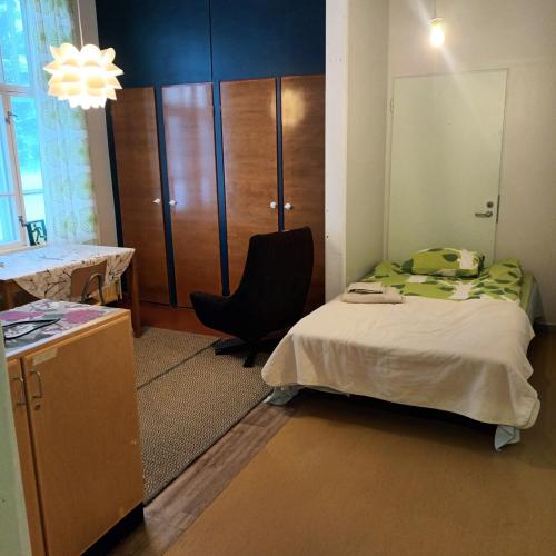 تتوفر (1) غرفة نوم في الشقة، ومطبخ صغير فيه ثلاجة وفرن، و (1) حمّام مع دش. تتوفر مواقف خاصة للسيارات مجاناً في مكان إقامة "Kukkolan vanha koulu".