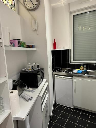 تتوفر (1) غرفة نوم في هذه الشقة، وغرفة معيشة، ومطبخ صغير مجهز بالكامل فيه ثلاجة وماكينة قهوة، و (1) حمّام مع حوض استحمام أو دش ولوازم استحمام مجاناً. تتوفر مناشف وبياضات أسرّة في الشقة.
