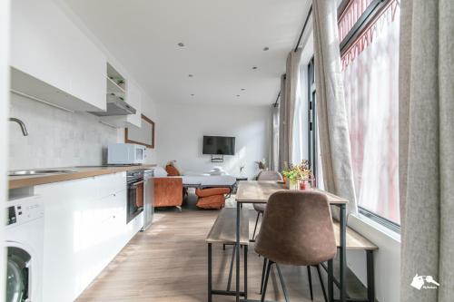 تتوفر (2) غرفة نوم في هذه الشقة، وغرفة معيشة، ومطبخ مجهز بالكامل فيه ثلاجة وماكينة قهوة، و (1) حمّام مع دش ومجفف للشعر. يوجد تلفزيون بشاشة مسطحة.