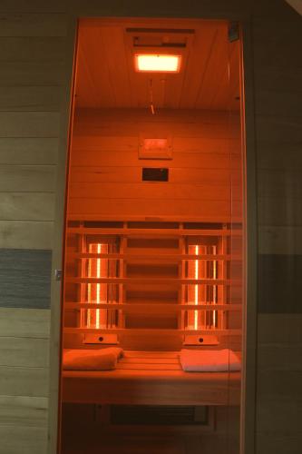 يوجد جهاز ألعاب في بيت العطلات، بالإضافة إلى مطبخ فيه ثلاجة وغسالة صحون وفرن، وغرفة معيشة، ومنطقة جلوس، ومنطقة لتناول الطعام، و (2) غرفة نوم، و (1) حمّام مع دش وحوض استحمام ساخن. تتوفر مناشف وبياضات أسرّة في بيت العطلات.