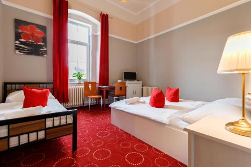 يتوفر في الغرف في "Sherwood Hotel Vojkovice nad Ohří" تلفزيون بشاشة مسطحة. تحتوي بعض الغرف في "Sherwood Hotel Vojkovice nad Ohří" على إطلالات على المدينة، بينما تتميز جميع الغرف بفناء. تحتوي كل غرفة في "Sherwood Hotel Vojkovice nad Ohří" على بياضات أسرّة ومناشف.