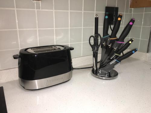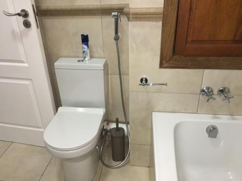 يوجد مشغل بلو راي (Blu-ray) في الشقة، بالإضافة إلى مطبخ فيه ثلاجة وفرن وميكروويف، وغرفة معيشة، ومنطقة جلوس، ومنطقة لتناول الطعام، و (2) غرفة نوم، و (2) حمّام مع بيديت ودش. تتوفر مناشف وبياضات أسرّة في الشقة.