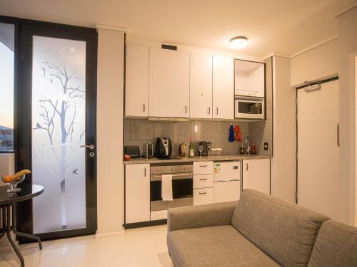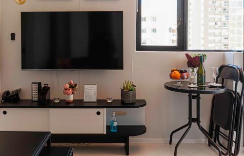 تتوفر (1) غرفة نوم في الشقة، و (1) حمّام، وبياضات أسرّة، ومناشف، وتلفزيون بشاشة مسطحة، ومنطقة لتناول الطعام، ومطبخ صغير مجهز بالكامل، وشرفة مع إطلالات على البحر.