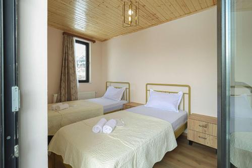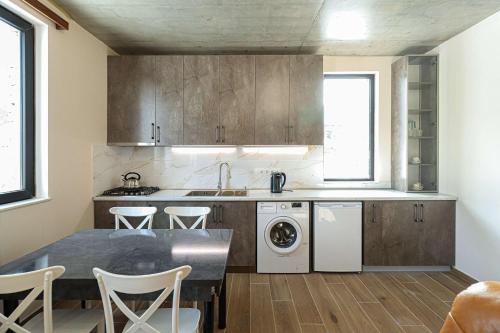 تتوفر (2) غرفة نوم في بيت العطلات، و (2) حمّام، وبياضات أسرّة، ومناشف، وتلفزيون، ومطبخ مجهز بالكامل، وفناء مع إطلالات على الجبل.