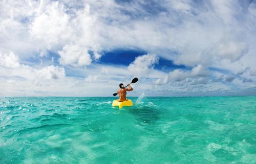 يشتمل المنتجع على 3 مطاعم وبار مع مسبح لا متناهي ومطعم مميز للأكل الفاخر وتجارب عشاء فريدة، ويُمكن للضيوف الاستمتاع برحلة عافية في السبا أو التوجه إلى مركز الرياضات المائية والغوص للرحلات الاستكشافية والغوص والمزيد.