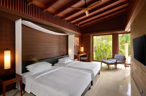 تقع الفيلات وسط المناطق الخضراء الاستوائية وتتميز بمناطق حمام ذات تصميم مفتوح توفر إطلالات خلابة، كما تشمل وسائل الراحة المتوفرة في الفيلا تراسات خاصة مع أسرّة نهارية وجهاز نقل البيانات من الإنترنت إلى وسائل العرض الإلكترونية وتلفزيون بشاشة مسطحة.