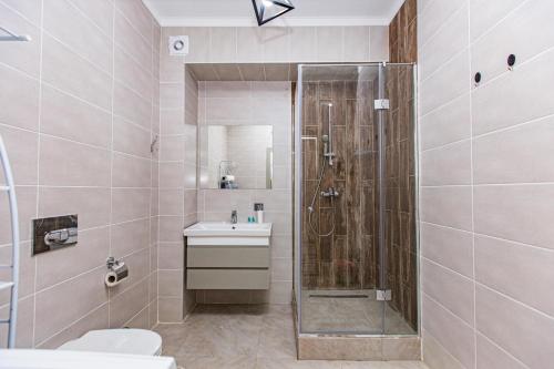 تتوفر (1) غرفة نوم للضيوف في هذه الشقة، بالإضافة إلى تلفزيون بشاشة مسطحة، وجهاز تكييف، وغرفة معيشة.