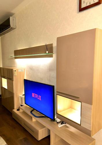 تتوفر (1) غرفة نوم للضيوف في هذه الشقة، بالإضافة إلى تلفزيون بشاشة مسطحة، وجهاز تكييف، وغرفة معيشة.