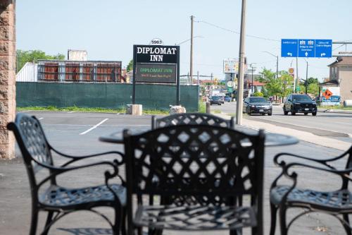يقع مكان إقامة "Diplomat Inn" في شلالات نياجارا، ضمن 700 م من برج سكيلون و900 م من منتجع كازينو نياجرا فولز فيو، ويوفر غرفاً مع جهاز تكييف وحمام خاص. يبعد مكان الإقامة تقريباً مسافة 2.6 كم عن شارع أولد فولز، و2.7 كم عن جسر قوس قزح، و2.8 كم عن مركز مؤتمرات نياجارا فولز. يمكن للضيوف استخدام تراس التشمس والاستفادة من واي فاي مجاني ومواقف خاصة للسيارات مجاناً.