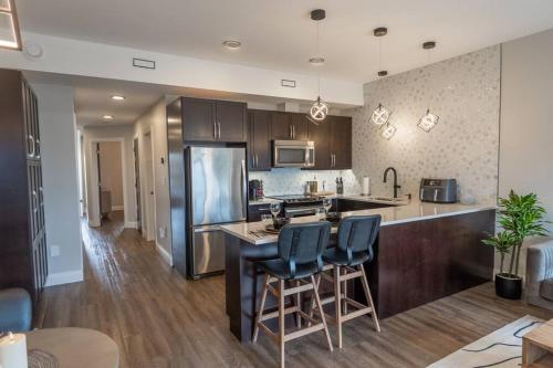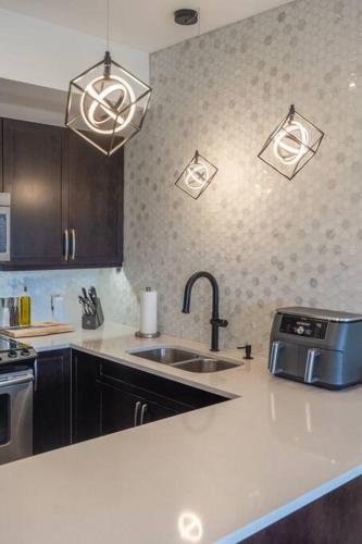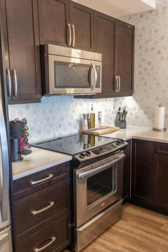 تتوفر (1) غرفة نوم في الشقة، ومطبخ فيه ثلاجة وغسالة صحون، و (1) حمّام مع دش ومجفف للشعر وغسالة ملابس. تتوفر مناشف وبياضات أسرّة في الشقة.