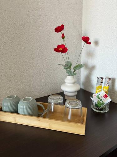 تحتوي كل وحدة على تكييف وحمام خاص مع دش.