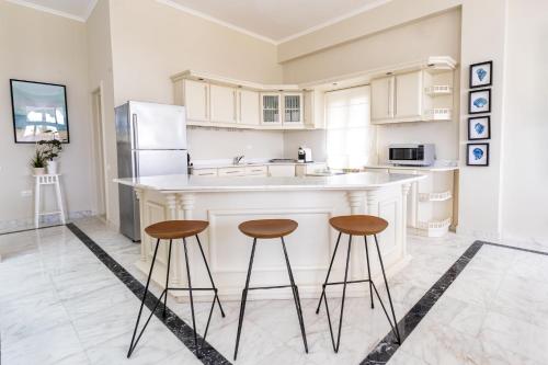 This 5-star resort is located in the heart of Hurghada and offers air-conditioned rooms with a private balcony. It includes 3 swimming pools, a spa, a children's pool and a private beach along the Red Sea. It also includes an aqua park.