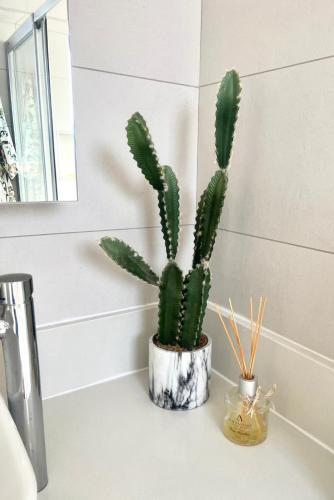 تتوفر (2) غرفة نوم في هذه الشقة، وتلفزيون، ومطبخ فيه ثلاجة وغسالة صحون، وجهاز تكييف. تتوفر مناشف وبياضات أسرّة في الشقة.