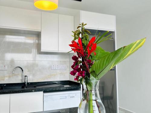 تتوفر (1) غرفة نوم في الشقة، و (2) حمّام، وبياضات أسرّة، ومناشف، وتلفزيون مع قنوات فضائية، ومطبخ مجهز بالكامل، وشرفة مع إطلالات على البحر.