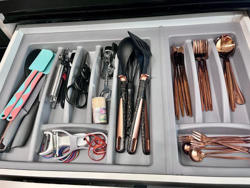 تتوفر (1) غرفة نوم في الشقة، وغرفة معيشة، ومطبخ مجهز بالكامل فيه ثلاجة وماكينة قهوة، و (1) حمّام مع بيديت ودش، وجهاز تكييف. تتوفر مناشف وبياضات أسرّة في الشقة.