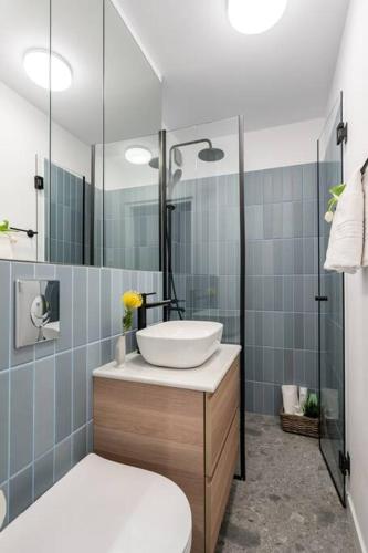 تتوفر (1) غرفة نوم للضيوف في هذه الشقة، بالإضافة إلى تلفزيون بشاشة مسطحة، وجهاز تكييف، وغرفة معيشة. تتوفر مناشف وبياضات أسرّة في الشقة.