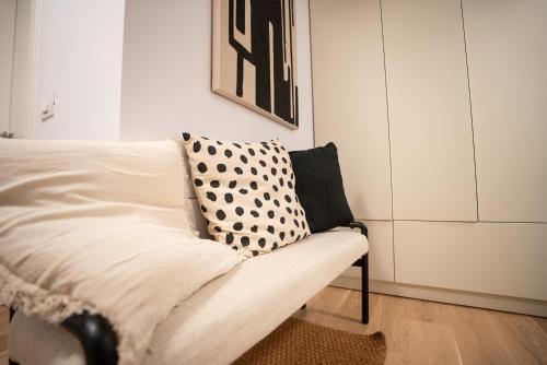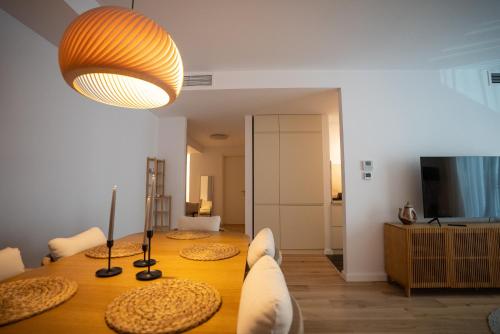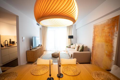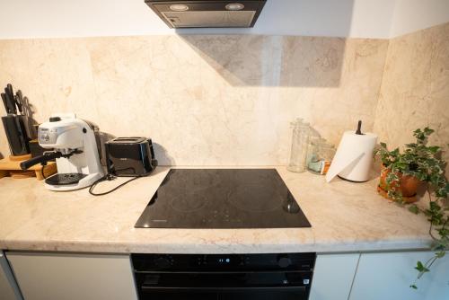 تتوفر (2) غرفة نوم في هذه الشقة، وغرفة معيشة، ومطبخ مجهز بالكامل فيه ثلاجة وماكينة قهوة، و (2) حمّام مع دش ولوازم استحمام مجاناً، وجهاز تكييف. تتوفر مناشف وبياضات أسرّة في الشقة.