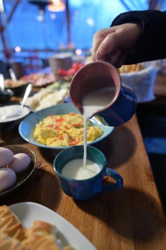 Guests at the luxury tent can enjoy a buffet breakfast. There is a coffee shop and bar.