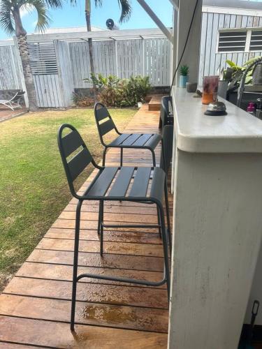 يوفر مكان إقامة "Villa meublé Tourisme 4 etoiles Sous le Ficus piscine chauffée - Ouest Lagon" تراس، بالإضافة إلى مرافق شواء.