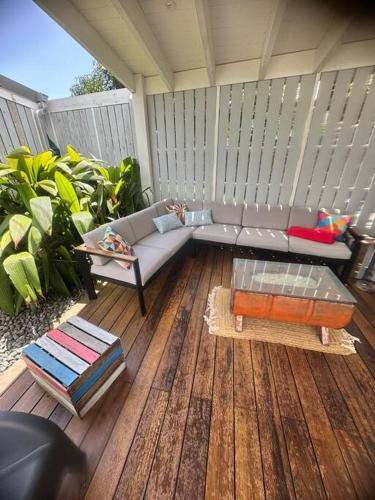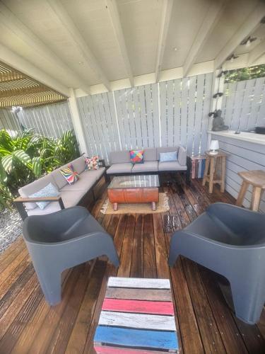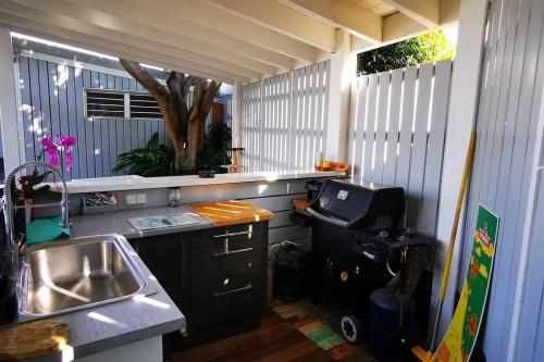 يوفر مكان إقامة "Villa meublé Tourisme 4 etoiles Sous le Ficus piscine chauffée - Ouest Lagon" تراس، بالإضافة إلى مرافق شواء.