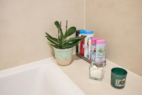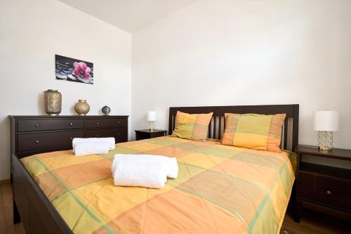 تتوفر (2) غرفة نوم في الشقة، وغرفة معيشة، وتلفزيون بشاشة مسطحة، ومطبخ مجهز فيه ثلاجة وغسالة صحون، و (1) حمّام مع حوض استحمام، بالإضافة إلى تراس وإطلالات على المدينة.