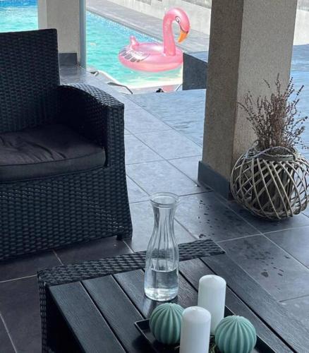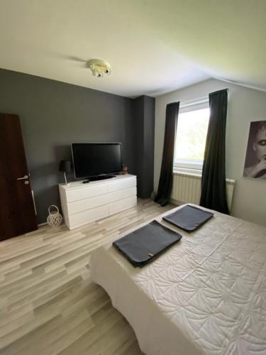 تتوفر (3) غرفة نوم في الفيلا، وتراس، وغرفة معيشة، ومطبخ مجهز بشكل جيد ويحتوي على ثلاجة. يوجد تلفزيون بشاشة مسطحة.